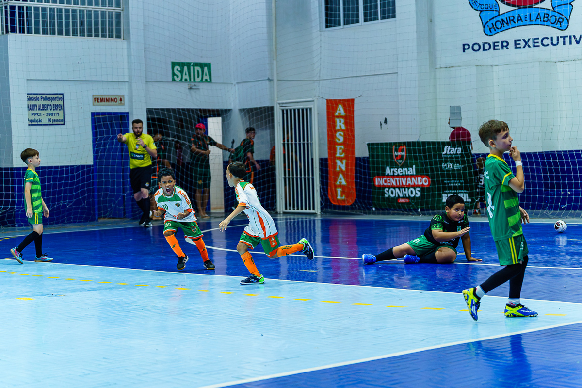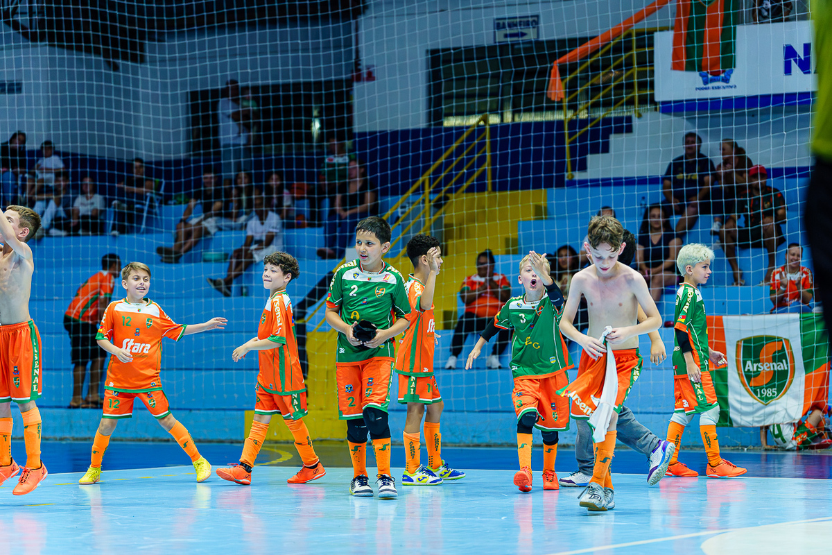 Na categoria Sub 7, o Arsenal NMT venceu o CMD Santa Bárbara do Sul por 3 a 1, demonstrando organização e vontade desde os primeiros minutos. Pelo Sub 9, o Arsenal voltou à quadra e conquistou o título com vitória por 1 a 0 sobre o Ser Djim, em um jogo equilibrado e decidido nos detalhes.